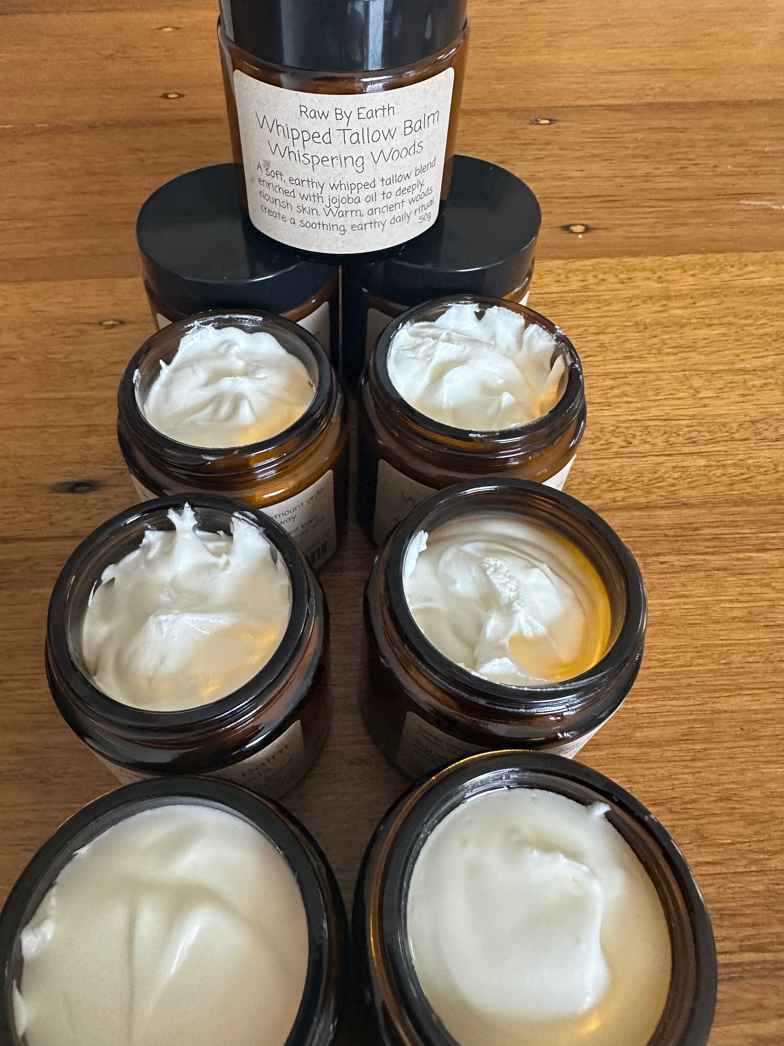 Made with 100% organic beef tallow and organic jojoba oil, infused with frankincense and sandalwood essential oils, this luxurious blend hydrates, supports skin elasticity, and leaves a soft, calming fragrance.